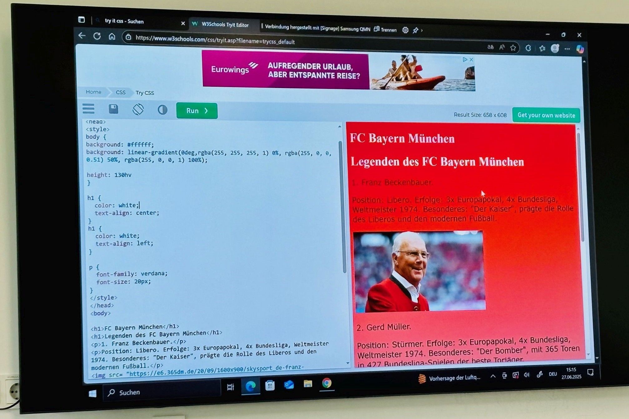 An diesem Tag konnten 150 Schüler*innen aus dem Münchner Raum, darunter auch unsere Abschlussklasse B9, zwei spannende Aktivitäten miteinander verbinden: das erste Programmieren einer Webseite in HTML/CSS und ein Fußballtraining auf dem Gelände des FC Bayern. Eine Brücke zwischen Sport und Denksport!