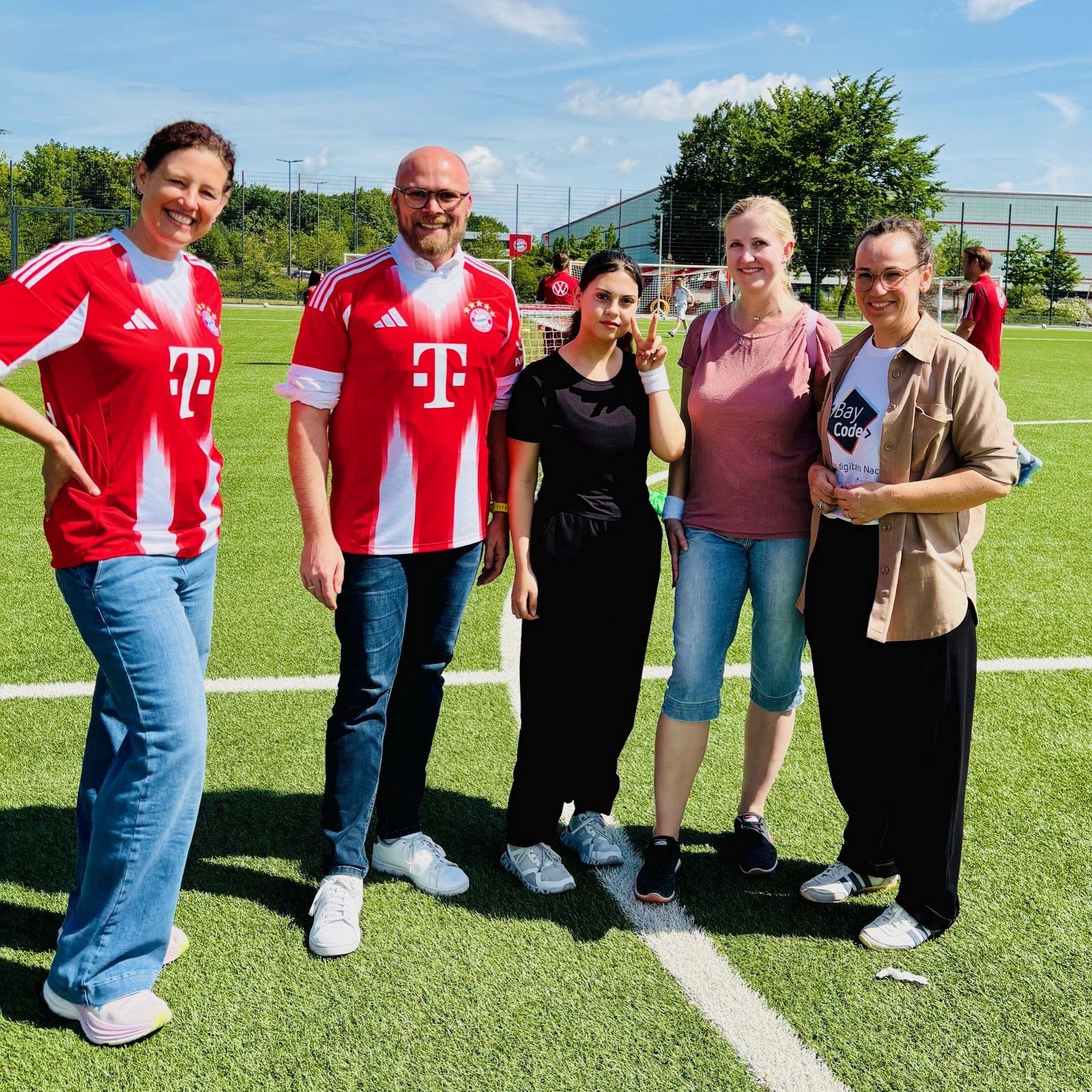 Einmal beim großen FC Bayern! Einmal einen wichtigen Politiker treffen! Einmal ein eigenes Programm schreiben! Am Freitag, den 27. Juni 2025 war die Klasse B9 auf eine ganz besondere Veranstaltung auf dem FC Bayern Campus in München eingeladen: BayCode Kicken & Coden, organisiert von der ReDISchool München und dem Bayerischen Staatsministerium für Digitales.