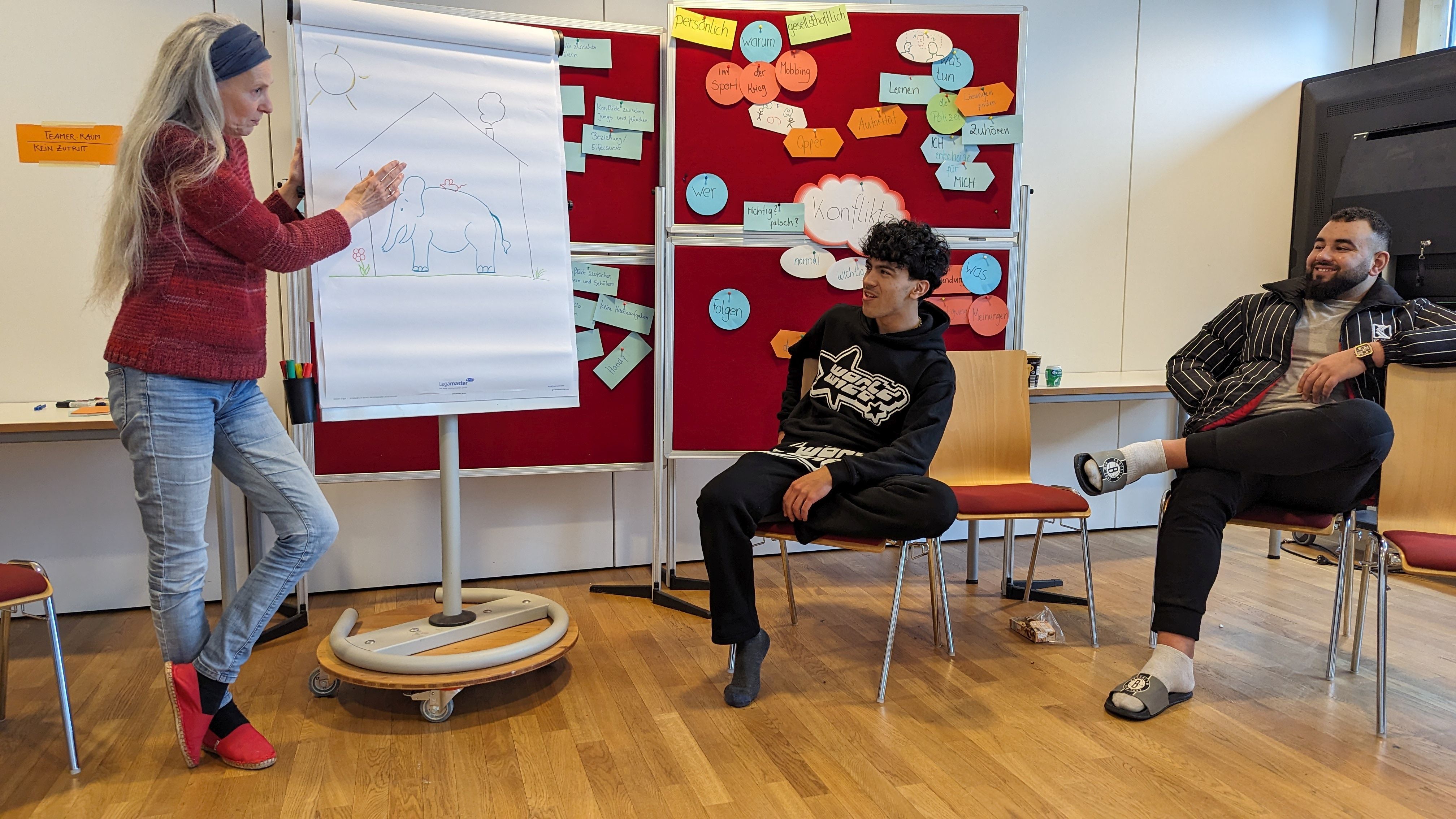 Die Schüler*innen wurden mit theoretischen Inhalten und praktischen Übungen zum Thema „Konflikte“ sensibilisiert. Der Schwerpunkt lag vor allem auf einer angemessenen Konfliktbearbeitung. Dies gelang mit zahlreichen anschaulichen Materialien, vielen interaktiven Rollenspielen und konstruktiven Diskussionen. Dabei wurden auch verschiedene Konfliktsituationen aus dem Schulalltag aufgegriffen.