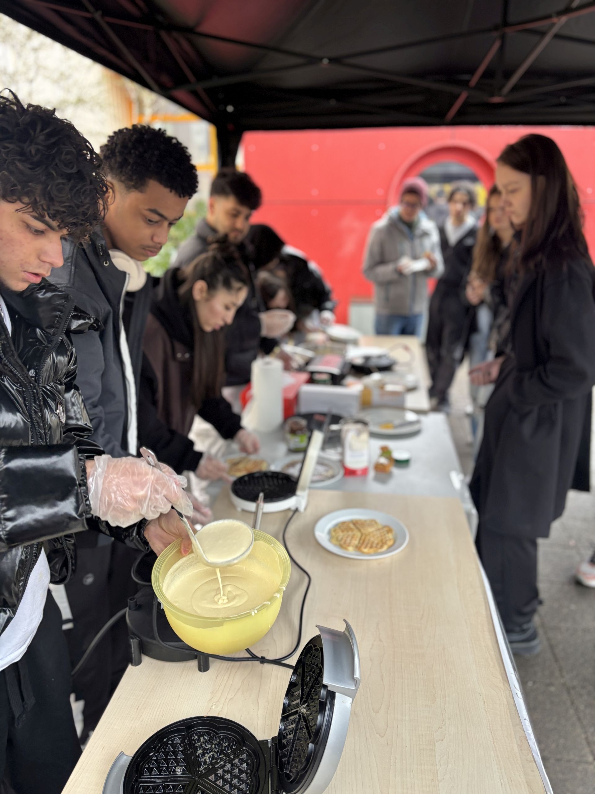 Mit großer Freude haben unsere Klassensprecher*innen eine Waffelverkaufsaktion organisiert, die ein voller Erfolg war. Die Schüler*innen hatten viel Spaß bei der Zubereitung und dem Verkauf der Waffeln und haben mit großem Engagement mitgeholfen.