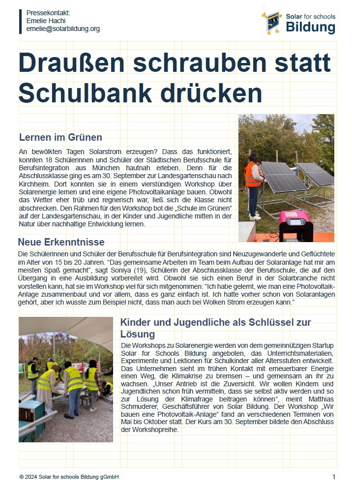 Hier können Sie den Bericht der Solar for Schools Bildung gGmbH, die den Workshop durchgeführt hat, als PDF öffnen.