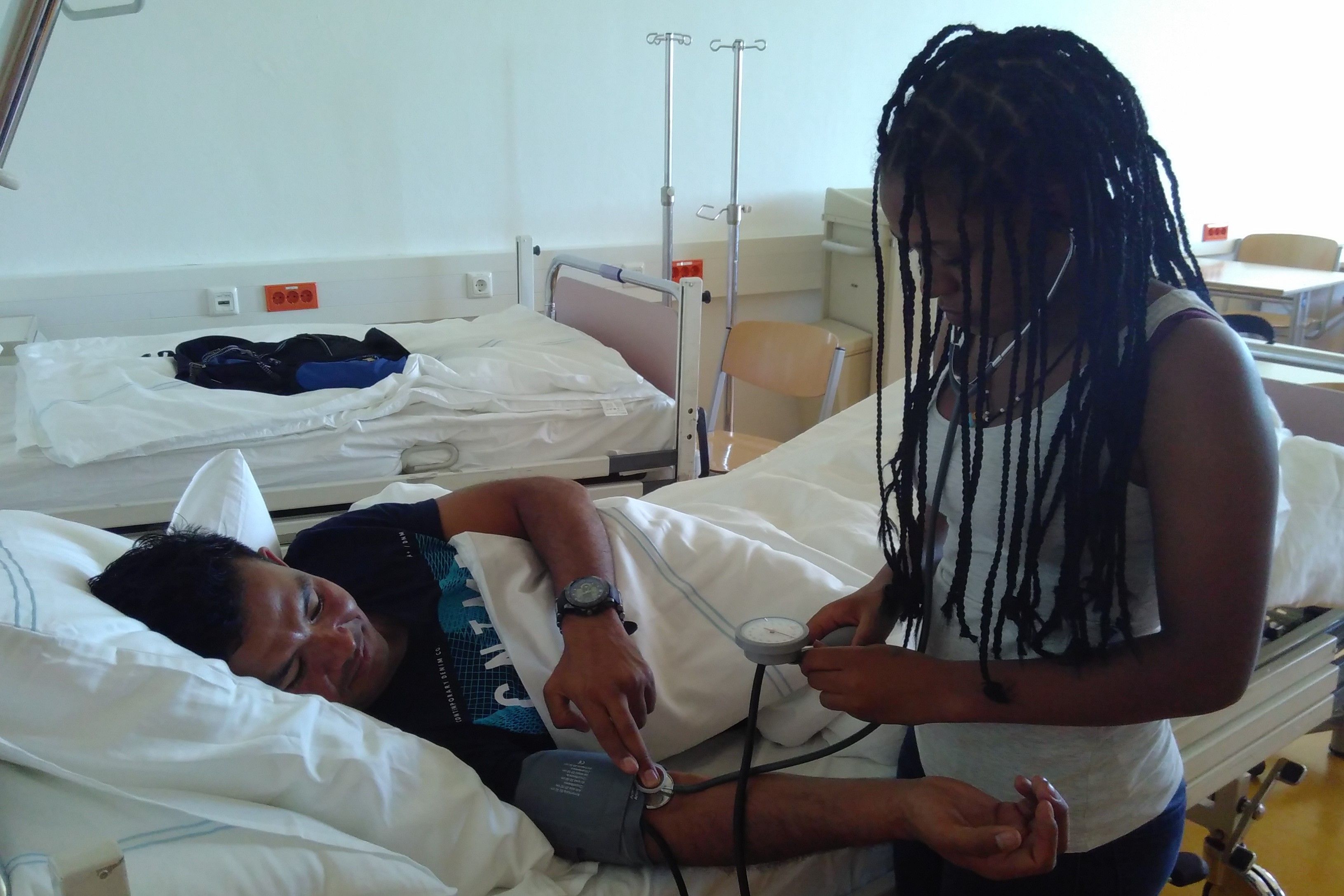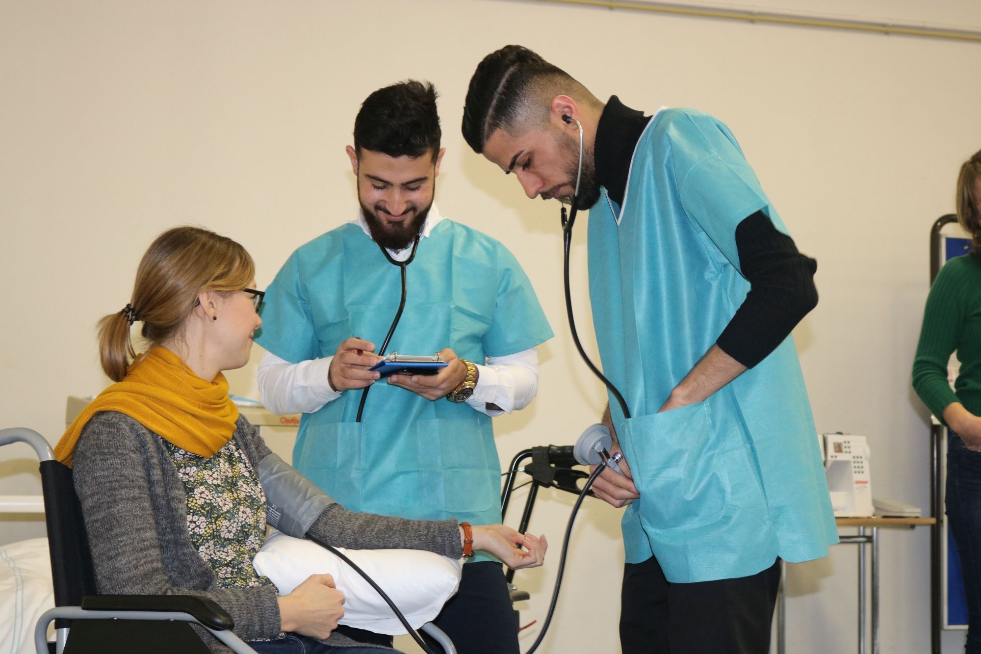 Einmal im Jahr besuchen wir gemeinsam die Pflegemesse. Aber auch Stippvisiten bei Tagen der offenen Tür, z. B. bei Pflegeschulen, stehen auf dem Plan. Außerdem bekommen wir im Unterricht Besuch von Praktiker*innen aus Pflege- oder medizinischen Berufen, etwa von Rettungssanitäter*innen.